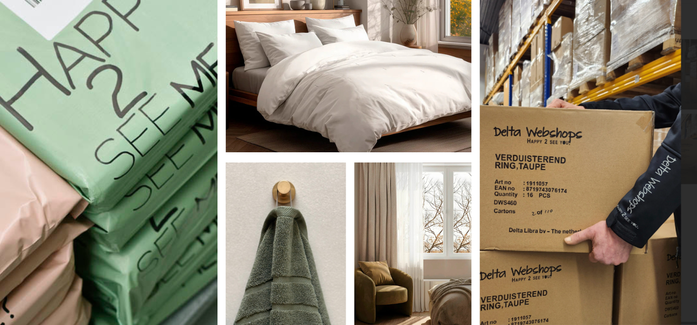 Van gordijnen en beddengoed tot badtextiel, woontextiel en verhuisdozen – alles direct uit voorraad leverbaar en eenvoudig te bestellen per doos of per project.